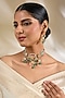 Featuring a gold finish choker necklace studded with kundan polki and fine beads, set in brass. It is paired with a matching pair of earrings. Perfect for wedding celebrations, festive soirees or cultural gatherings adding a regal charm to every look.
