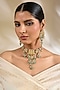 Featuring a gold finish choker necklace studded with kundan polki and fine beads, set in brass. It is paired with a matching pair of earrings. Perfect for wedding celebrations, festive soirees or cultural gatherings adding a regal charm to every look.