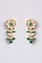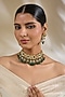 Featuring a gold finish choker necklace studded with kundan polki and green fine beads, set in brass. It is paired with a matching pair of earrings. Perfect for wedding celebrations, festive soirees or cultural gatherings adding a regal charm to every look.