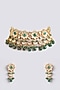 Gold Finish Kundan Polki & Green Beaded Choker Necklace Set