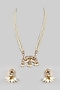 Featuring a gold finish necklace studded with kundan polki and mother of pearls, set in mixed metal. It is paired with a matching pair of earrings. Style it with elegant evening wear or festive ensembles to elevate your neckline with effortless grace. Perfect for weddings and sophisticated celebratory gatherings.