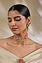 Featuring a gold finish choker necklace studded with kundan polki and pink fine beads, set in brass. It is paired with a matching pair of earrings. Perfect for wedding celebrations, festive soirees or cultural gatherings adding a regal charm to every look.