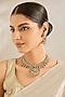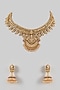 Featuring a gold finish temple necklace studded with kundan polki, set in mixed metal. It is paired with a matching pair of earrings. Style it with elegant evening wear or festive ensembles to elevate your neckline with effortless grace. Perfect for weddings and sophisticated celebratory gatherings.