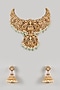 Featuring a gold finish temple necklace studded with kundan polki, set in mixed metal. It is paired with a matching pair of earrings. Style it with elegant evening wear or festive ensembles to elevate your neckline with effortless grace. Perfect for weddings and sophisticated celebratory gatherings.