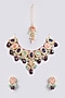 Featuring a gold finish choker necklace studded with multi-colored kundan polki and beads, set in brass. It is paired with a matching pair of earrings and a maangtikka. Perfect for wedding celebrations, festive soirees or cultural gatherings adding a regal charm to every look.