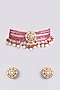 Gold Finish Red Kundan Polki & Beaded Choker Necklace Set
