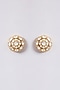 Featuring a gold finish choker necklace studded with red kundan polki and fine beads, set in brass. It is paired with a matching pair of earrings. Perfect for wedding celebrations, festive soirees or cultural gatherings adding a regal charm to every look.