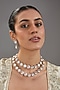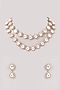 Featuring a two tone finish dangler layered necklace studded with white kundan polki, set in mixed metal. It is paired with a matching pair of earrings. Perfect wear for festive occasions or wedding ceremony.