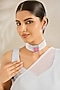 Featuring a white finish choker necklace studded with cubic zirconia, pink stone and pearls, set in mixed metal. It is paired with a matching pair of earrings. Style it with elegant evening wear or festive ensembles to elevate your neckline with effortless grace. Perfect for weddings, cocktail nights and sophisticated celebratory gatherings.