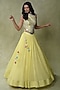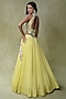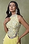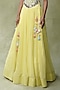 Featuring a bright lemon yellow flared lehenga in raw silk and chiffon base with tassels detail. It is paired with a high-neck blouse having floral and cutdana work. Accentuate it with statement earrings and heels for sangeet, haldi or weddings ceremonies.