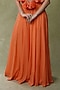 Featuring a bright orange crop top in georgette and raw silk base. It is paired with a a bib-style collar having thread, mirror and beads hand embroidery, including wide-leg palazzo pants. Accentuate it with statement earrings and heels for sangeet, cocktail or pre-wedding ceremonies.