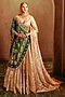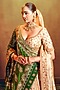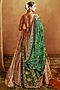 Featuring an ivory and gold lehenga in organza tissue banarasi base with zardosi, cutdana and bead hand embellishments. It is paired with a blouse, tissue embroidered dupatta having banarasi border and green pure bandhani dupatta. Accentuate it with statement jewellery, a coordinated clutch and classic embellished heels for a bridal look.