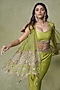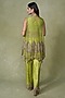 Lime Green Organza Mirror Work Asymmetrical Overlay Jacket Set