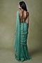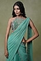 Featuring a mint green pre-draped saree in georgette, chiffon and organza base with tassels detail on the pallu. It is paired with a halter-neck blouse. Accentuate it with statement earrings and heels for sangeet, mehendi or pre-wedding ceremonies.
