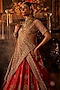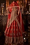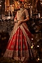 Featuring a red lehenga in raw silk base with cutdana, sequins and zardosi embellishments. It is paired with an embroidered blouse having a deep v-neckline and an organza dupatta. Style it with diamond and emerald layered necklaces and a sleek bun, great for a sophisticated and luxurious bridal ensemble.