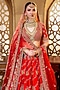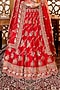 Featuring a red lehenga in raw silk, organza and tissue base with elephant and peacock motifs placement hand embroidery, including pearl, cutdana, resham and zardosi embellishments. It is paired with a blouse and pair of hand embroidered dupattas. Accentuate it with statement jewellery, a coordinated clutch and classic embellished heels for a bridal look.