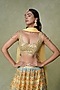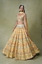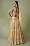 Featuring a yellow and blue lehenga in organza and georgette base with motif, resham, cutdana, beads and mirror work. It is paired with a raw silk blouse mirror embroidery and a dupatta. Accentuate it with statement earrings and heels for sangeet, haldi or weddings ceremonies.