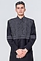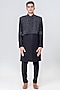 Featuring a black sherwani in japanese polyester base with embellishments. It is paired with a matching self chanderi kurta and trousers. Accentuate it with pair of mojaris for festive occasions or wedding ceremonies.