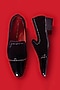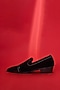 Featuring a pair of black slip-ons in velvet and patent leather base. Perfect wear for any festive occasions or wedding ceremony.