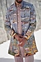 Featuring a dusty purple indowestern jacket in organza base with threadwork and hand embroidery. It is paired with a modal silk kurta and trousers. Style it up with mojaris for a wedding, sangeet or engagement ceremony.