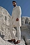 Featuring an ivory indowestern jacket in modal silk base with beadwork and embroidery. It is paired with an embroidered kurta and cotton silk trousers. Style it up with mojaris for a wedding, sangeet or engagement ceremony.