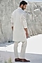 Featuring an ivory kurta in modal silk base with motifs and resham hand embroidery. It is paired with ivory cotton silk trousers. Style it up with kolhapuri sandals for a festive occasion, an intimate pooja, wedding or engagement ceremony.