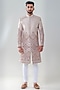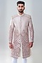 Featuring a moon dust sherwani in raw silk base with embellishments. It is paired with a self chanderi kurta and ivory trousers. Perfect for wedding ceremonies.