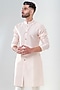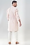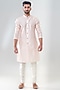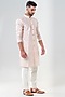 Featuring a pink front open kurta in cotton silk base with meenakari buttons. It is paired with ivory cotton?silk?trousers. Style it with a pair of kolhapuris and a bracelet for a festive occasion or pooja ceremony.