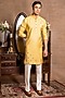 Featuring a yellow kurta in cotton silk base with hand embroidery. It is paired with white cotton silk pants. Style it with mojaris for a festive occasion, haldi or wedding ceremony.