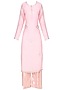 This set features a soft pink straight kurta in chanderi with applique booti work and embellished edges. It comes along with pink palazzo pants in chanderi brocade and contrast soft blue chiffon dupatta with bootis scattered around and pink brocade border.