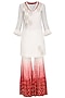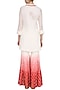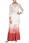 Featuring an ivory and red kurta in chiffon base with hand embroidery. It is paired with matching ombre gharara pants and dupatta.