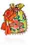 Featuring a yellow potli bag in raw silk base with green and orange floral print and gold thread bird embroidered motifs all over the front and back along with gold lace detailing on the sides. It has an orange dori tie up with orange rings, fabric balls, strings of white beads and thread fringes tassel hangings at the edges.