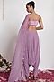 Featuring a mauve pre-draped dhoti saree in georgette base. It is paired with a blouse having thread work, tassels and hand embroidery. Accentuate it with swarovski jewellery and heels for a festive celebrations, wedding functions or evening soirees.