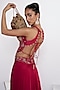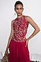Featuring a rani pink blouse skirt in matka silk base with floral hand embroidery. It is paired with a chinon skirt. Accentuate it with silver jewellery and heels for a festive celebrations or wedding functions.