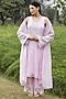 Featuring a salmon pink cape in pure chanderi base with thread, dabka and zardosi hand embroidery. It is paired with a chanderi kurta and matka modal silk pants. Accentuate it with dangler earrings and block heels for festive occasions or weddings.