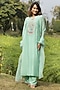 Featuring a sea green kurta in chanderi base with thread, dabka and zardosi hand embroidery. It is paired with matka modal silk pants and an organza dupatta. Accentuate it with dangler earrings and block heels for festive occasions or weddings.