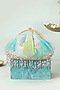 Blue Banarasi Silk Floral Handwork Vintage Purse