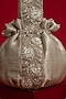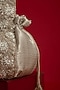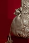 Featuring a champagne round-shaped potli in organza tissue base with woven silver lace and thread tassel detailing. It has a poly satin lining and an embroidered handle. Whether you're dressing up for a special occasion or adding a dash of elegance to your traditional look, it is an ideal accessory to complete your ensemble.