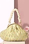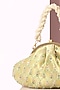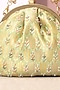 Featuring a green vintage purse in pure banarasi silk base with golden metal clasp frame and embroidery. It has a suede lining and a pearl handle. Carry it as a statement piece with traditional attire for weddings, events, or festive celebrations.