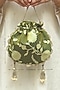 Featuring a green potli in pure banarasi silk and tissue base with scalloped lace details and handcrafted tassels. It has a poly satin lining, woven gold thread drawstring and pearl handle. Perfectly sized to hold your essentials, it?s a timeless accessory that complements both ethnic and contemporary outfits.