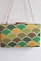 Our green Mehreen clutch is detailed with shaded fabric and zari embroidery on soft silk. Pair this?multi-hued stunner with any outfit and?watch it stand out as a statement accessory. It has a suede underlining.