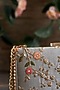 Featuring a grey clutch in poly silk base with floral embroidery. It has a poly satin lining and a golden metal sling.