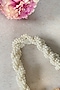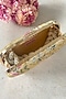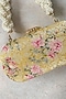 Featuring a mustard clutch in organza brocade base with floral print and thread work. It has suede lining, a detachable pearl handle, and a golden metal frame.