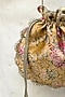 Featuring a mustard potli in pure banarasi silk and gold tissue base with scallop lace pearl embellishments, including pearl and crystal bead tassels. It has a poly satin lining and woven gold thread drawstring. Perfect for weddings, receptions, festive celebrations, it adds sophistication and pairs beautifully with lehengas, sarees, gowns, and pastel ensembles.