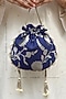 Featuring a navy potli in pure banarasi silk and tissue base with scalloped lace details and handcrafted tassels. It has a poly satin lining, woven gold thread drawstring and pearl handle. Perfectly sized to hold your essentials, it?s a timeless accessory that complements both ethnic and contemporary outfits.