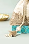 Featuring an off-white potli in pure silk base with floral lace, pearl hangings, zari tassels and woven gold thread drawstring detail. It has a poly satin lining and braided handle. Accentuate it with traditional or festive wear to add a rich, elegant touch, perfect for weddings, sangeet functions, festive celebrations or cultural events.