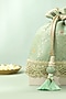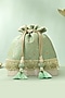Featuring a pastel green potli in katan silk base with golden drawstring and thread tassel detailing. It has a poly satin lining and braided dori handle. Whether you're dressing up for a special occasion or adding a dash of elegance to your traditional look, it is an ideal accessory to complete your ensemble.
