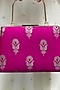 Featuring a pink clutch in pure silk base with meenakari work. It has a suede lining, metal clutch frame, metal lock closure and a detachable metal sling. Perfectly sized to hold your essentials, it?s a timeless accessory that complements both ethnic and contemporary outfits.