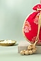 Featuring a red potli in handwoven raw silk base with lace and cutdana ball tassel detailing. It has a poly satin lining, including zardosi and sequins embellished handle. Whether you're dressing up for a special occasion or adding a dash of elegance to your traditional look, it is an ideal accessory to complete your ensemble.