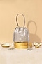 Featuring a silver bucket bag in organza base with embellishment. It has a poly satin lining and a detachable embellished handle. Perfect for glamorous events or chic cocktail parties.